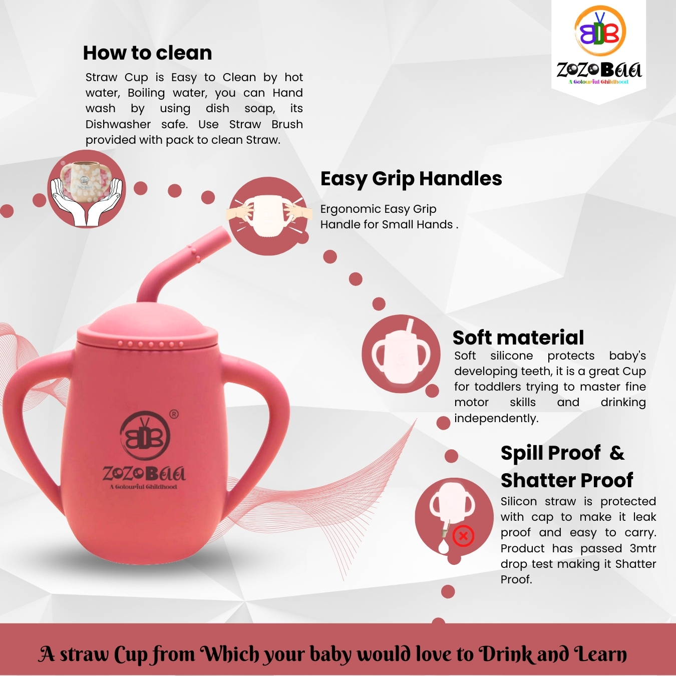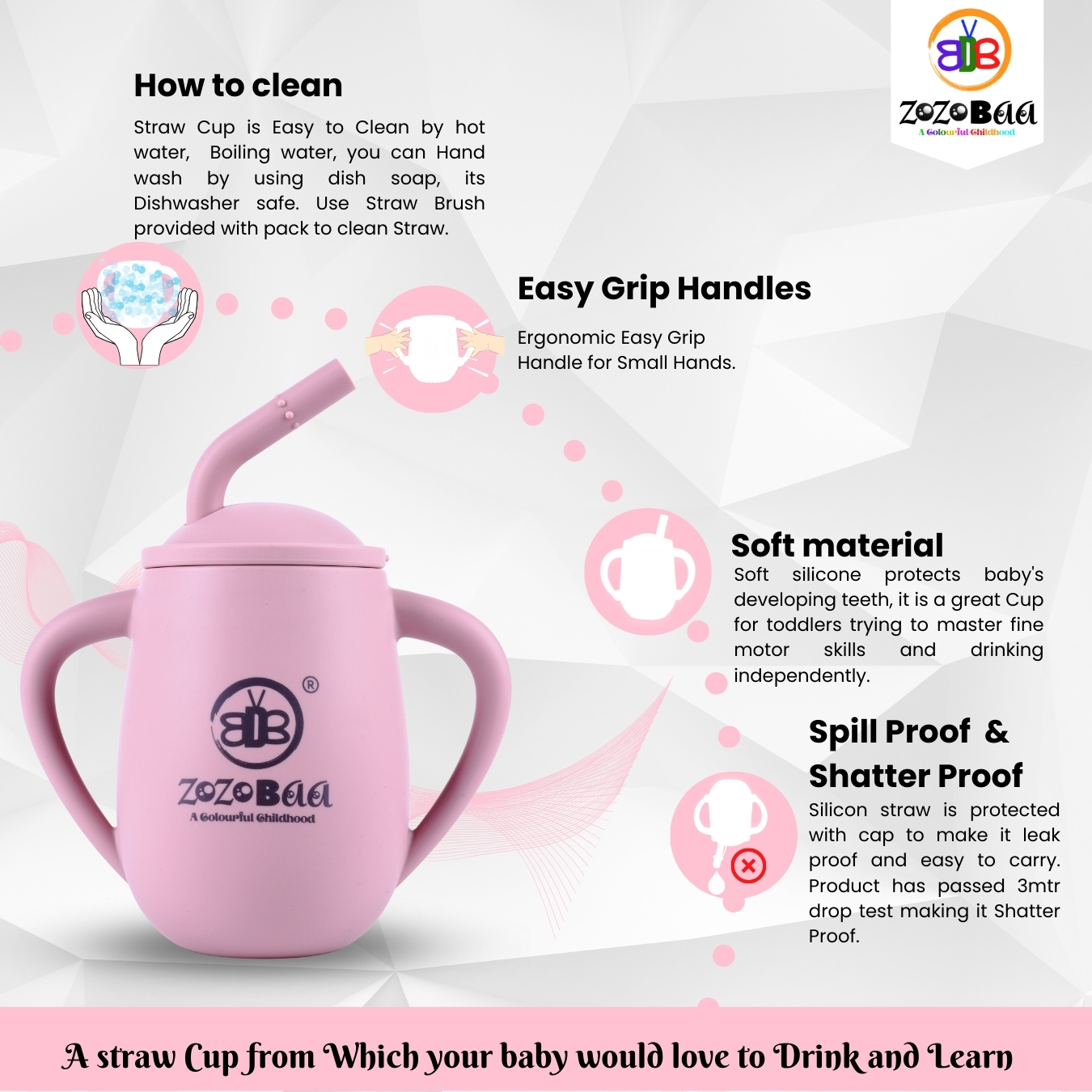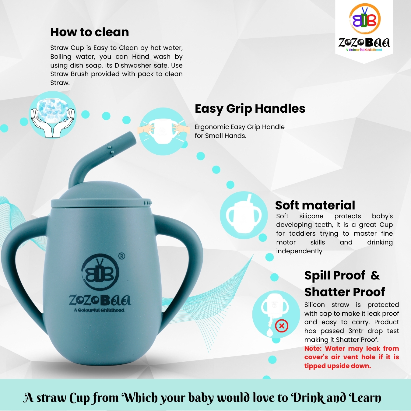 - Leakproof & Shatterproof Design: Designed to withstand accidental drops, this baby learning cup is durable, break-resistant, and leakproof, making it perfect for everyday use